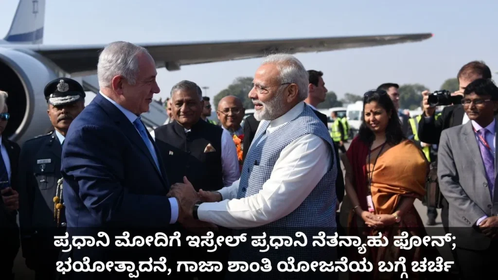 ನವದೆಹಲಿ, ಡಿಸೆಂಬರ್ 10: ಪ್ರಧಾನಿ ನರೇಂದ್ರ ಮೋದಿ (PM Modi) ಅವರಿಗೆ ಇಂದು ಇಸ್ರೇಲ್ ಪ್ರಧಾನಿ ಬೆಂಜಮಿನ್ ನೆತನ್ಯಾಹು ದೂರವಾಣಿ ಕರೆ ಮಾಡಿದ್ದಾರೆ. ಇಬ್ಬರೂ ನಾಯಕರು ಎರಡೂ ದೇಶಗಳ ನಡುವಿನ ಕಾರ್ಯತಂತ್ರದ ಪಾಲುದಾರಿಕೆಯನ್ನು ಬಲಪಡಿಸುವ ಮಾರ್ಗಗಳನ್ನು ಚರ್ಚಿಸಿದ್ದಾರೆ. ಭಯೋತ್ಪಾದನೆಯ ಬಗ್ಗೆ ಭಾರತ ಶೂನ್ಯ ಸಹಿಷ್ಣುತೆಯನ್ನು ಪ್ರಧಾನಿ ಮೋದಿ ಈ ವೇಳೆ ಪುನರುಚ್ಚರಿಸಿದ್ದಾರೆ. ಈ ವೇಳೆ ಭಯೋತ್ಪಾದನೆ ಮತ್ತು ಗಾಜಾ ಶಾಂತಿ ಯೋಜನೆಯ ಬಗ್ಗೆ ಇಬ್ಬರೂ ನಾಯಕರು ಚರ್ಚಿಸಿದ್ದಾರೆ. ಗಾಜಾ ಶಾಂತಿ ಯೋಜನೆಗೆ ಭಾರತದ ಬೆಂಬಲವನ್ನು ಪ್ರಧಾನಿ ಮೋದಿ ಪುನರುಚ್ಚರಿಸಿದ್ದಾರೆ.